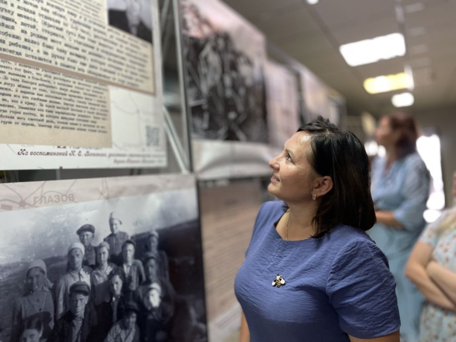 С приветственным словом на открытии выставки выступили Глава муниципального образования «Муниципальный округ Можгинский район Удмуртской Республики» Александр Васильев, председатель районного Совета ветеранов Нина Загуменнова. Так же на мероприятии присутствовали участницы строительства железной дороги Ижевск–Балезино Елизавета Павловна Анисимова и Варвара Кирилловна Белых с дочерью Галиной Спиридоновой.
