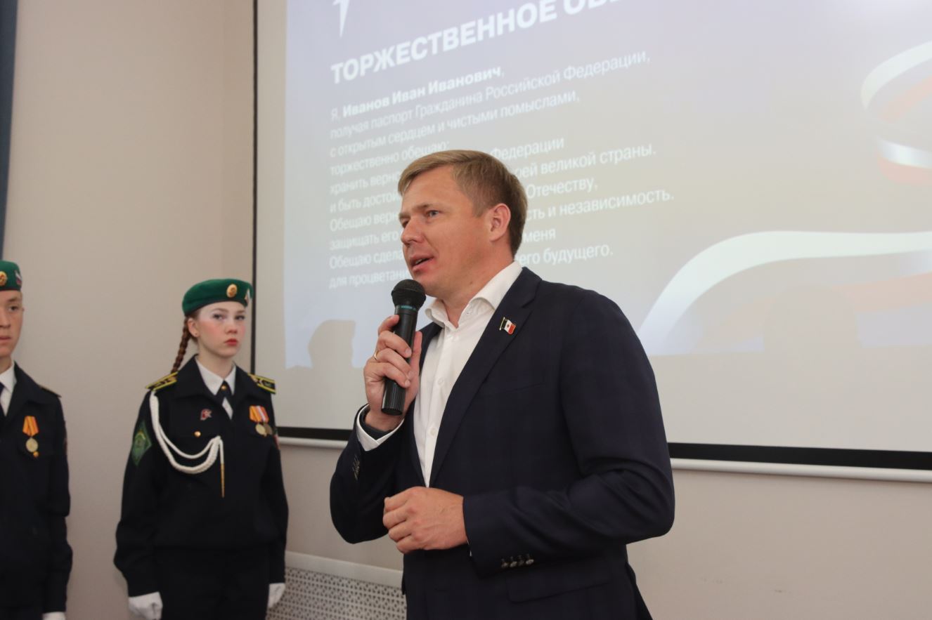 «Получение первого взрослого документа - это особый повод гордиться тем, что вы стали полноправными, ответственными гражданами своей страны. Страны, сильнее, мощнее и величественнее которой не было и не будет никогда. Так сложилось, что свой главный документ в жизни вы получаете в исторический для нашей страны период. Тем важнее и памятнее этот день – теперь у вас в руках не только паспорт, но и будущее нашей Родины. Удачи вам, достижения смелых целей. Новых ярких, больших побед во взрослой жизни», - отметил Дмитрий Чистяков.