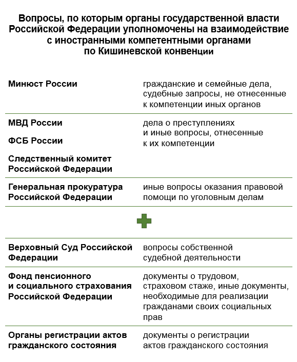 В соответствии с Указом территориальными и иными органами, уполномоченными на осуществление непосредственного взаимодействия с компетентными органами стран-участников Конвенции 2002 года, являются, в том числе, Главные управления Минюста России по субъектам Российской Федерации, Министерства внутренних дел Российской Федерации и Фонд пенсионного и социального страхования Российской Федерации.