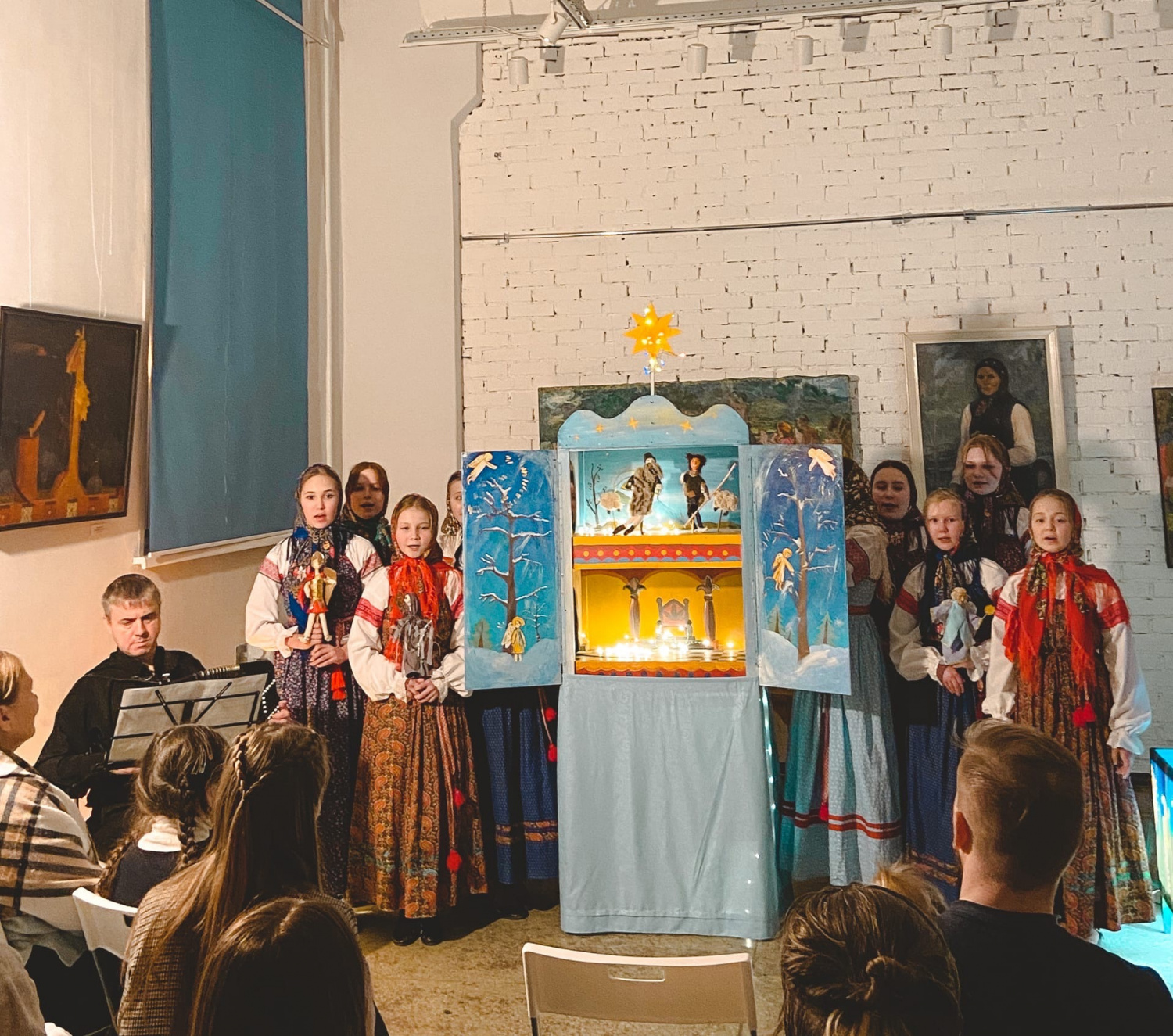 в Музейно-просветительском центре было душевно. Благодаря ансамблю «Вечёрочка» из Детской школы искусств 12, гости окунулись в рождественскую атмосферу и увидели вертепный спектакль «Смерть царя Ирода».