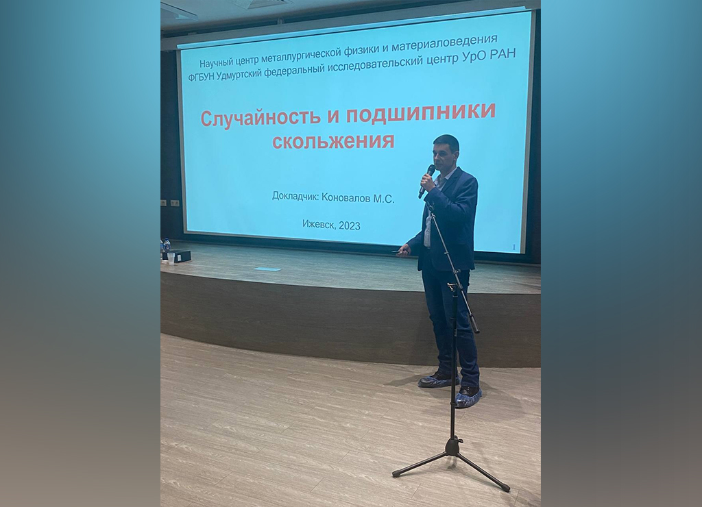 УдмФИЦ УрО РАН представляли два участника: инженер-исследователь Физико-технического института Элина Хаметова и младший научный сотрудник Научного центра металлургической физики и материаловедения Максим Коновалов . Элина выступила с докладом «Кто такой СпектерО и как он может помочь ученым?», Максим - «Случайность и подшипники скольжения».