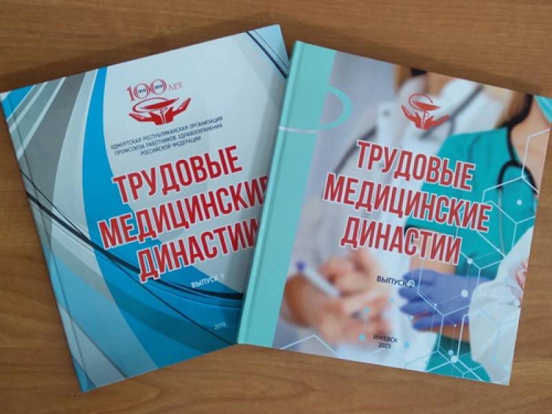 Национальная библиотека УР получила в дар от Удмуртской республиканской организации профсоюза работников здравоохранения РФ два выпуска издания «Трудовые медицинские династии» (2019, 2023) .
