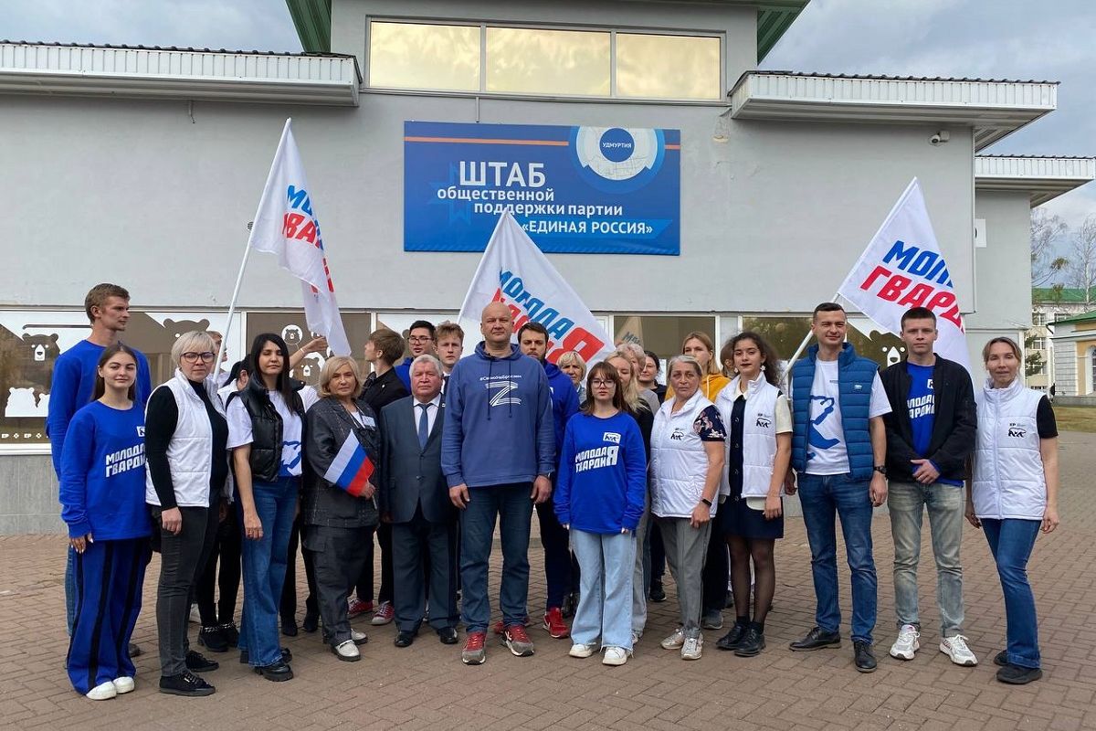 Депутат Государственной Думы от Удмуртии Олег Гарин , депутат Государственного Совета Петр Фомин и депутат Гордумы Ижевска Александр Головин посетили Штаб общественной поддержки и приняли участие в «Эстафете добрых дел».