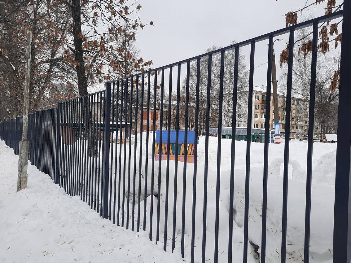 Для решения проблемы были направлены средства реестра наказов избирателей. В результате выполненных работ было полностью заменено ограждение по южной стороне детского сада со стороны военкомата. Новое выполнено из профильной трубы с заполнением тоже из профильной трубы с порошковым покрытием в заводских условиях. Всего получилось 54 секции 2,5 метра шириной на 2 метра высотой общей протяженностью почти 140 метров.
