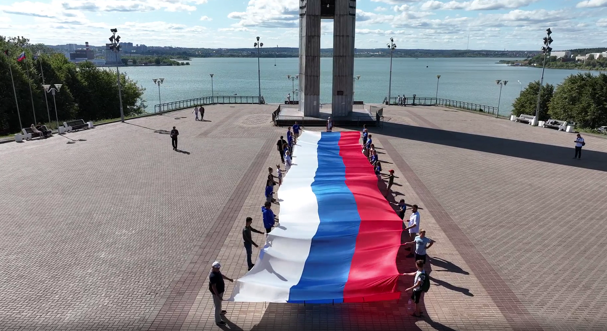 В честь Дня флага Удмуртские молодогвардейцы и Сторонники «Единой России» растянули 50-метровый триколор