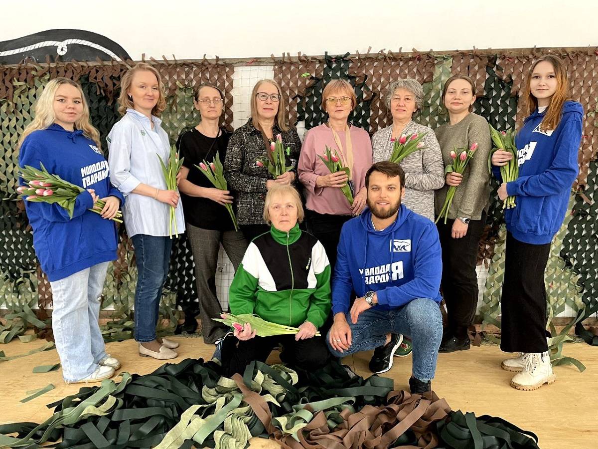 Сегодня во всем мире отмечается Международный женский день. В преддверии праздника ребята из «Молодой Гвардии Единой России» в Удмуртии поздравили участниц волонтерского движения «Zащита18. Маскировочные сети. Ижевск». Волонтёры движения изготавливают маскировочные сети и отправляют их в зону проведения спецоперации. Со слов военнослужащих, находящихся в зоне СВО, сегодня это очень необходимая вещь на фронте, и любая помощь тыла очень нужна и вносит огромный вклад в общее дело.