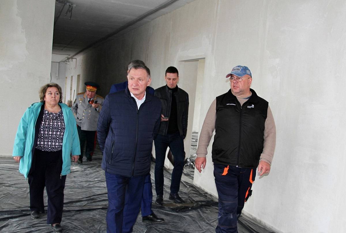 О ходе строительных работ ему рассказал представитель подрядной организации. Сейчас на объекте выполняют устройство цементно-песчаных стяжек, ремонт дощатых полов, оштукатуривание стен и потолков. Закончить ремонтные работы планируют к осени.