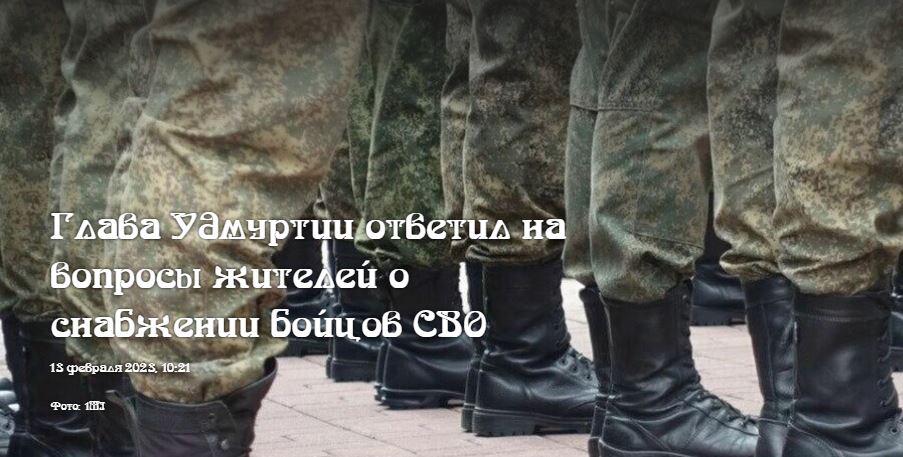 Участники СВО от Удмуртии регулярно получают гуманитарную помощь от властей региона, командиры направляют списки необходимых им вещей и оборудования. Об этом 13 февраля на аппаратном совещании рассказал глава республики Александр Бречалов, отвечая на вопрос жительницы.