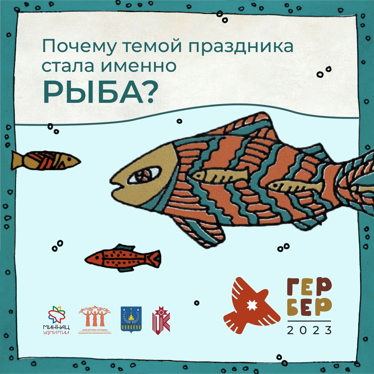 Каждый год национальный праздник "Гербер", переезжая из одного района республики в другой, старается показать не только культуру и традиции удмуртов, но и «изюминку» принимающего района. Воткинский район славится своей богатой чистой природой, является родиной великих людей, гордится развитой промышленностью. Именно здесь находится село Пихтовка – первая Деревня будущего в нашей республике и место, где развивается известное на всю страну рыбное хозяйство. В религиозных верованиях удмуртов ещё в 19 веке культ рыбы имел свою заметную нишу. Удмурты приносили в жертву рыбу, неслучайно хариуса до сих пор называют «вöсь чорыг» (жертвенная, священная рыба). В родовых святилищах удмуртов – куала – в воршудном коробе хранилась сушёная рыба, чаще окунь. А по древним поверьям удмуртов земной шар держится на рогах быка, который стоит на огромной рыбе. Именно эти факты помогли создать облик Гербера 2023-го года. Будет красиво, вкусно, полезно и интересно! Источник информации: https://vk.com/vesti_votkinsk?w=wall-180631902_48971