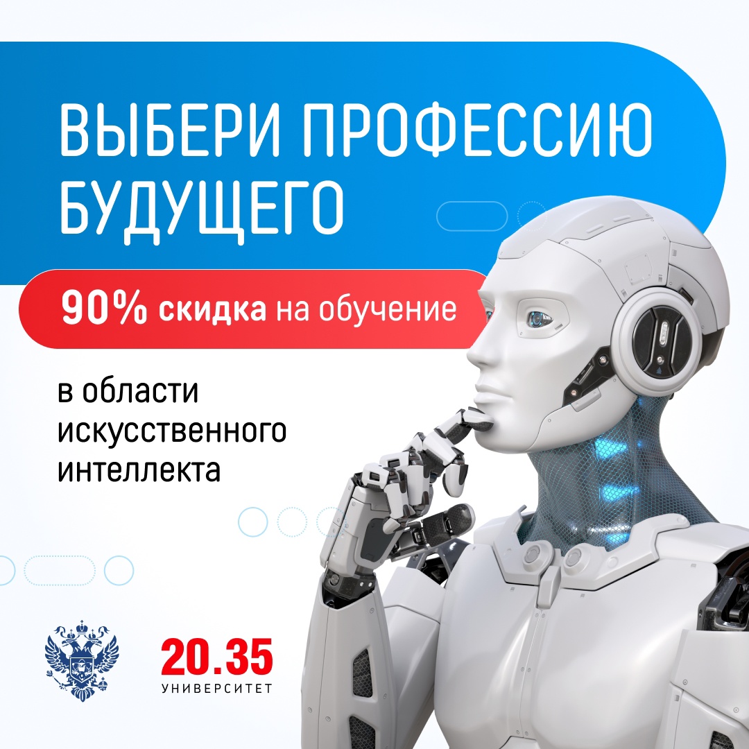 Университет 2035 открывает набор на курсы с господдержкой в области ИИ: https://clck.ru/34FDii Обучение проходит в онлайн-формате на выгодных условиях: до 90% стоимости курса финансирует государство! На платформе Университета 2035 можно выбрать курсы от 11 ведущих вузов и ИТ-компаний: Университет ИТМО, Финансовый университет при Правительстве РФ, Яндекс, СберУниверситет, МФТИ, МГТУ им. Н.Э. Баумана, Университет Иннополис, ТУСУР, РосНОУ, 1Т, Мобильное электронное образование. Правила участия в проекте: государство софинансирует до 90% стоимости курса (до 85 тысяч руб. на обучение на курсах стоимостью до 110 000 руб.); оставшуюся часть можно оплатить самостоятельно либо за счет работодателя: с учетом софинансирования сумма доплаты не превышает 25 000 рублей; получить льготу возможно только на 1 курс. Подробнее об условиях — в карточках. Подайте заявку в числе первых на сайте https://clck.ru/34FDii Проект реализуется Минэкономразвития России и Университетом 2035 в рамках федпроекта «Искусственный интеллект» нацпрограммы «Цифровая экономика РФ». Источник информации: https://vk.com/digitaludmurtia?w=wall-199284742_1799 Источник информации: https://vk.com/university2035?w=wall-164984229_5016