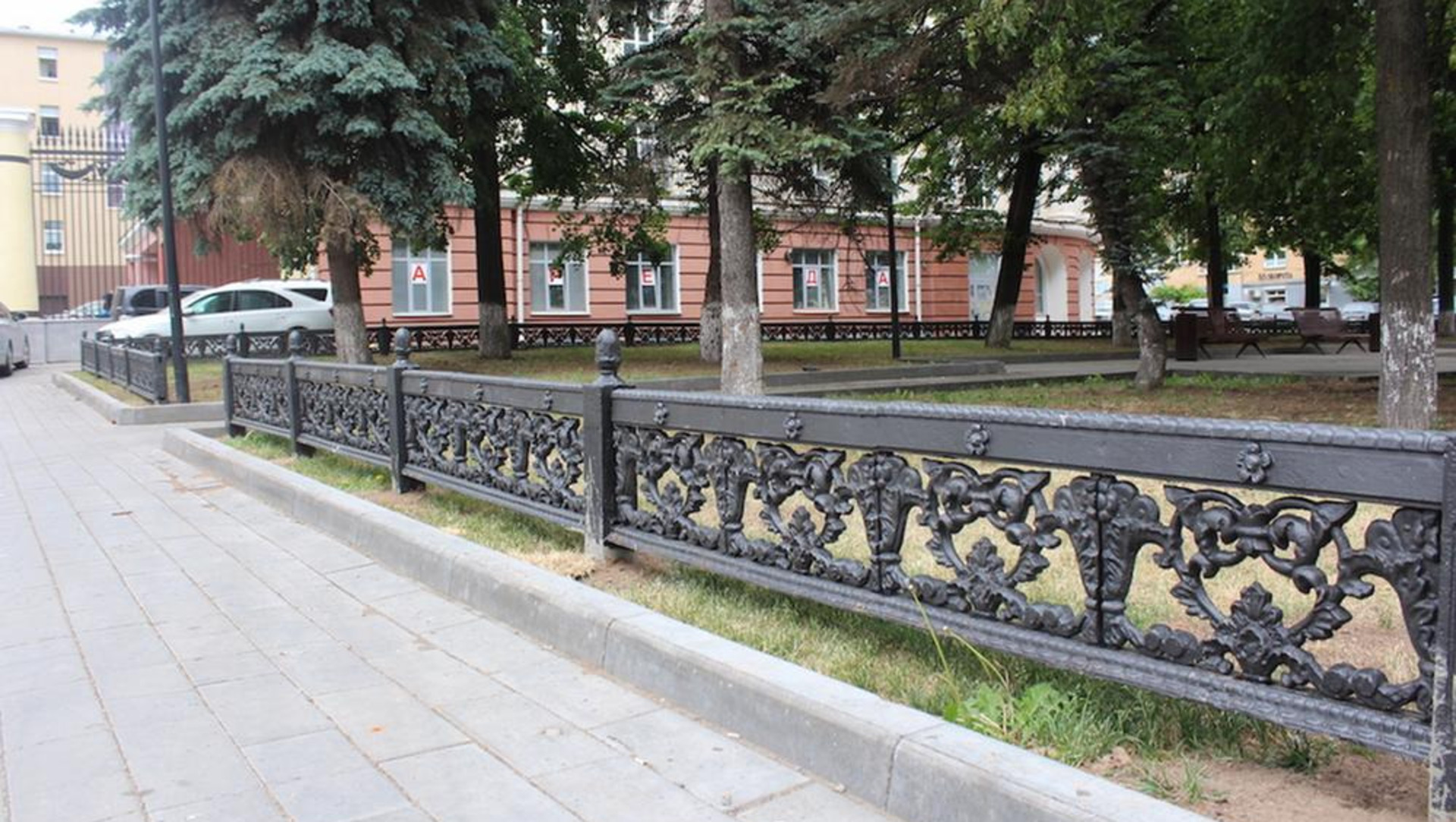 В Ижевске в сквере возле Национальной библиотеки Удмуртии завершили монтаж чугунного ограждения, отлитого на заводе «Ижсталь» по историческим образцам.