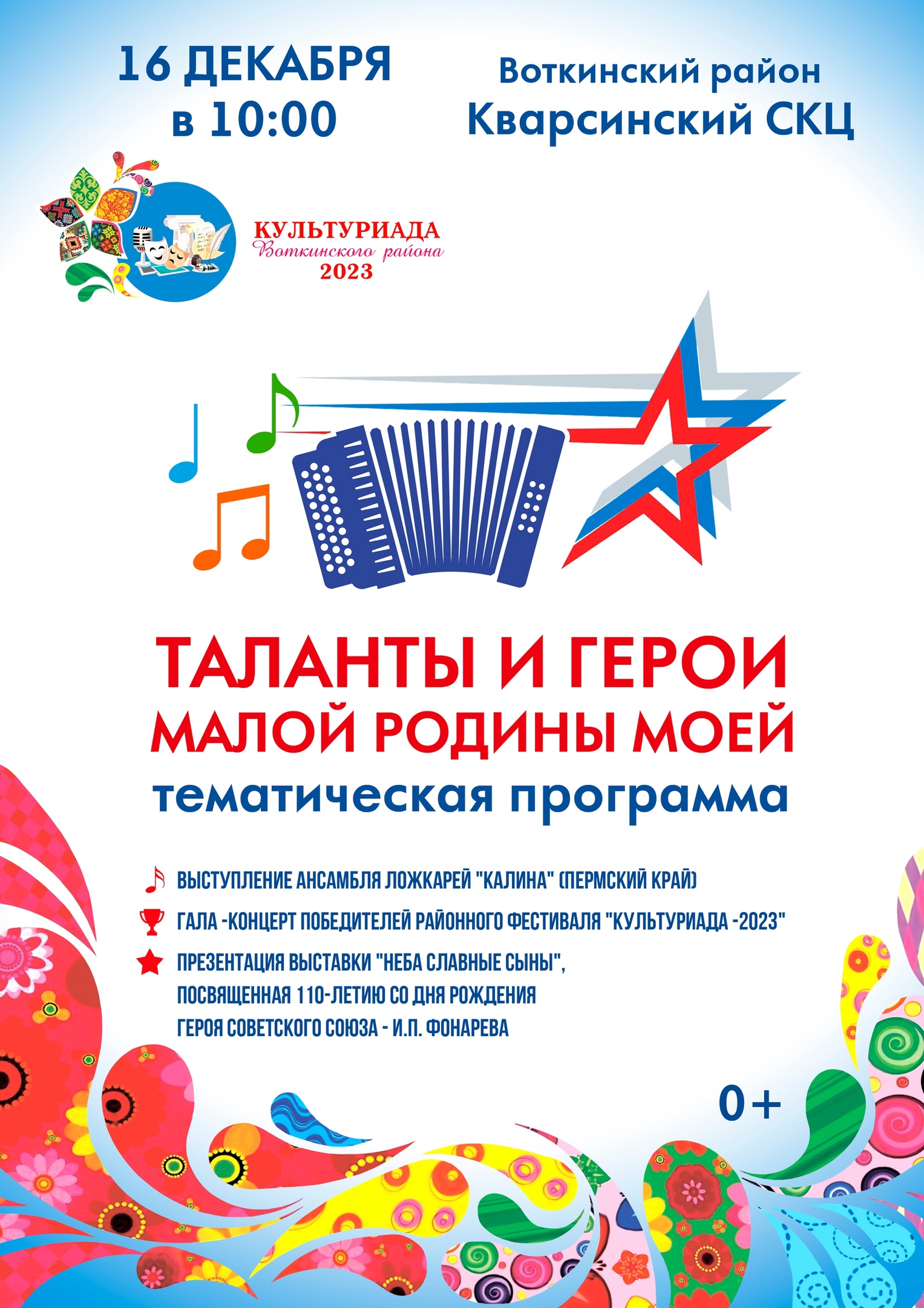 Уже 16 декабря на базе Кварсинского СКЦ в 10:00 состоится Гала-концерт победителей фестиваля «Культуриада-2023»!