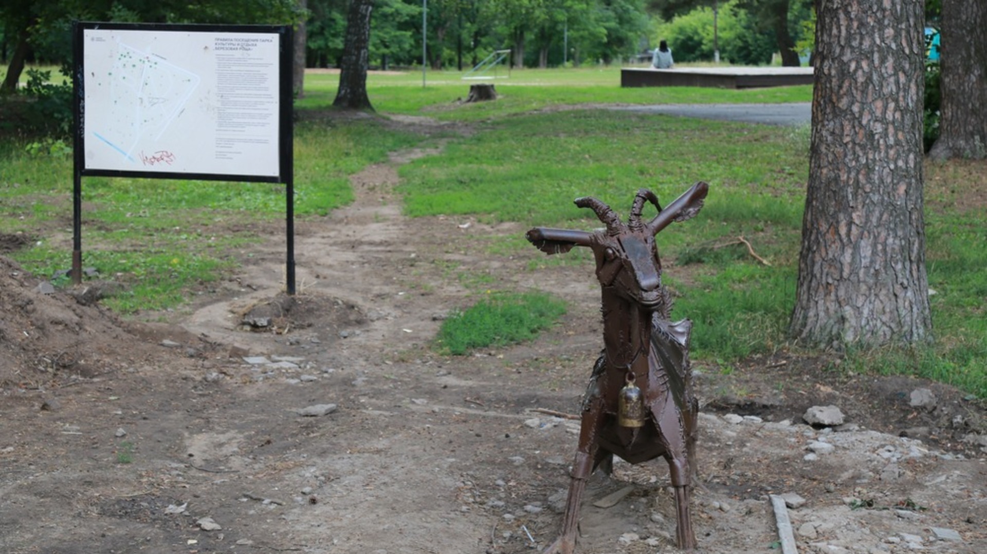 На данный момент строители завершили облицовку лестничного схода к речке Карлутке. Лестничный сход дополнят пешеходным ограждением и отдельным спуском для маломобильных граждан. На центральной алее парка появилась пешеходная дорожка, ведущая к скульптуре Козы. Также строители обустраивают транзитные дорожки через парк. В этом году в парке должны появится 78 современных светильников, системы электроснабжения и видеонаблюдения.