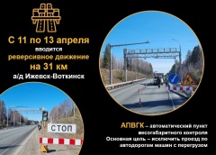С сегодняшнего дня по 13 апреля на участке автодороги Ижевск-Воткинск вводится реверсивное движение.