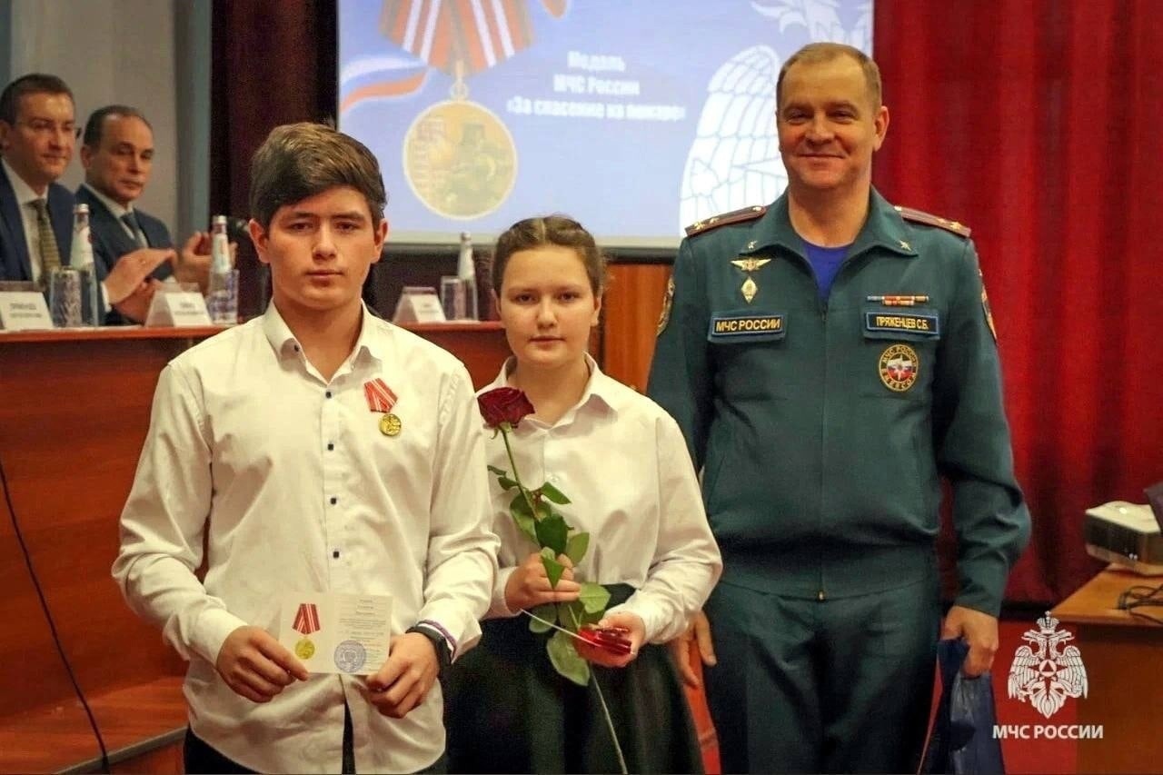 Вручил награды лично руководитель ГУ МЧС России по Удмуртии Сергей Пряженцев. В феврале 2022 года пожар произошел в частном доме, где жила семья с 10 детьми. Семья успела выбраться, однако один из детей, 4-летний мальчик, не вышел из дома. Брат и сестра Александр и Елизавета забежали в дом и в дальней комнате под диваном обнаружили брата. Они вывели его из горящего дома, а остальные члены семьи оказали первую доврачебную помощь. Героями себя ребята не считают, говорят, что не могли поступить иначе. Их героизм по достоинству оценен высокой наградой.