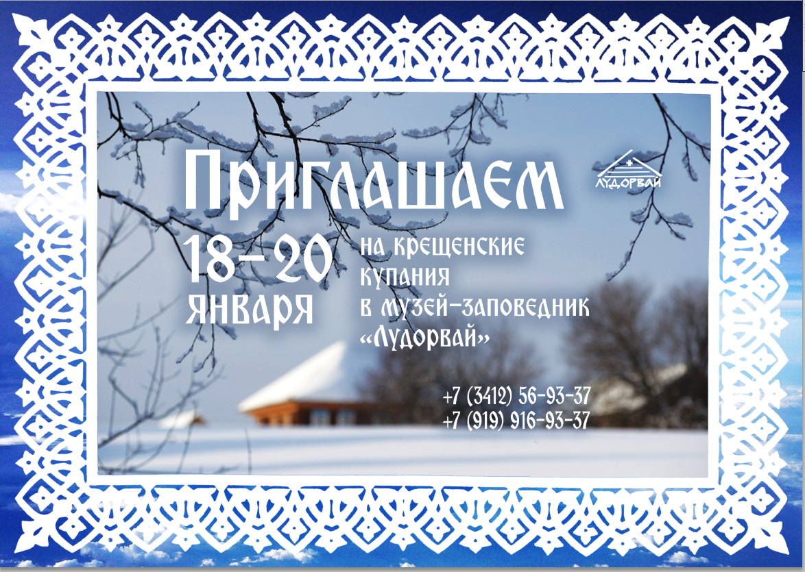18, 19 и 20 января приглашаем на крещенские купания в музей-заповедник "Лудорвай"