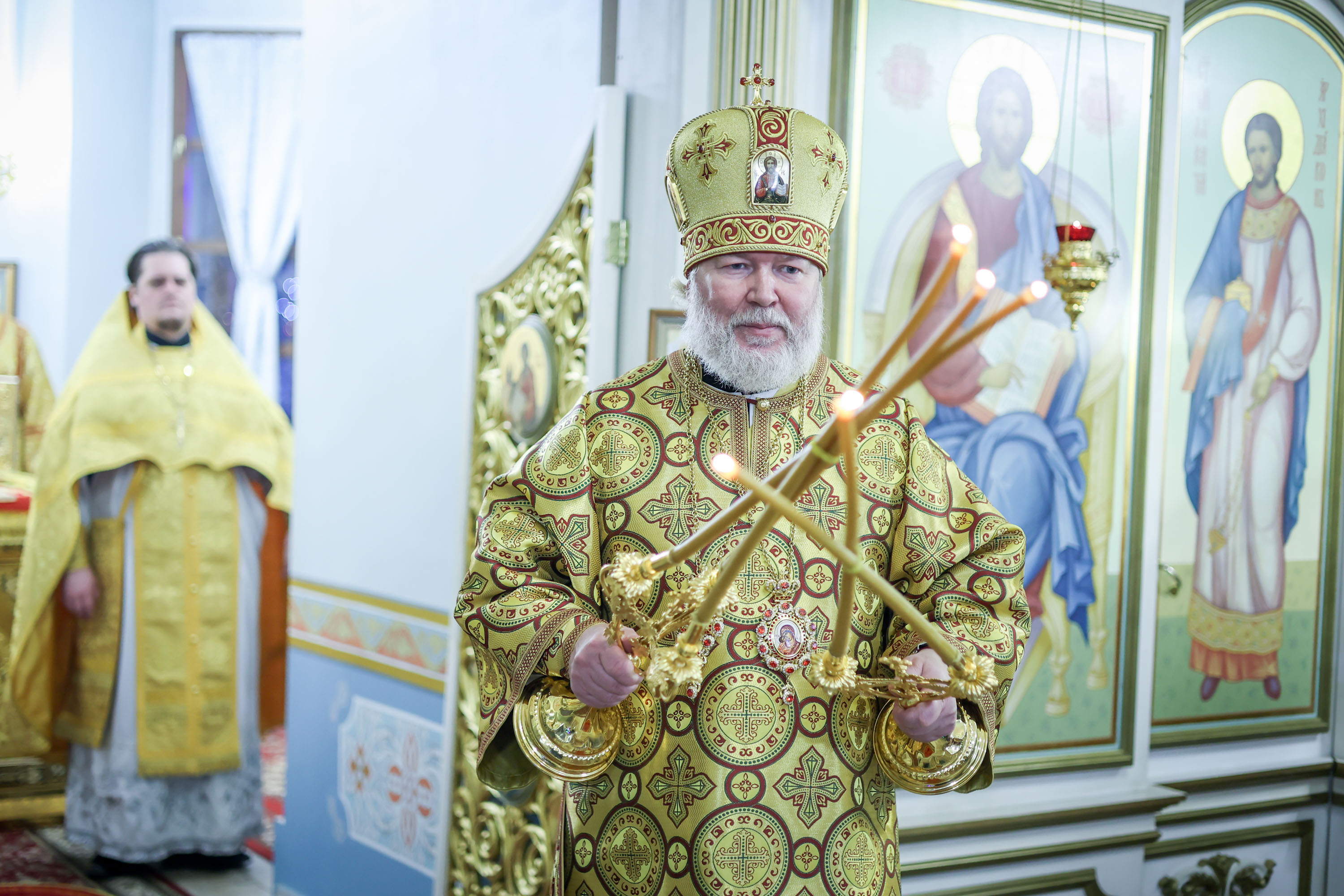 Его Преосвященству сослужили: секретарь епархии, настоятель собора священник Димитрий Сырчин и клирик собора священник Димитрий Суханов.
