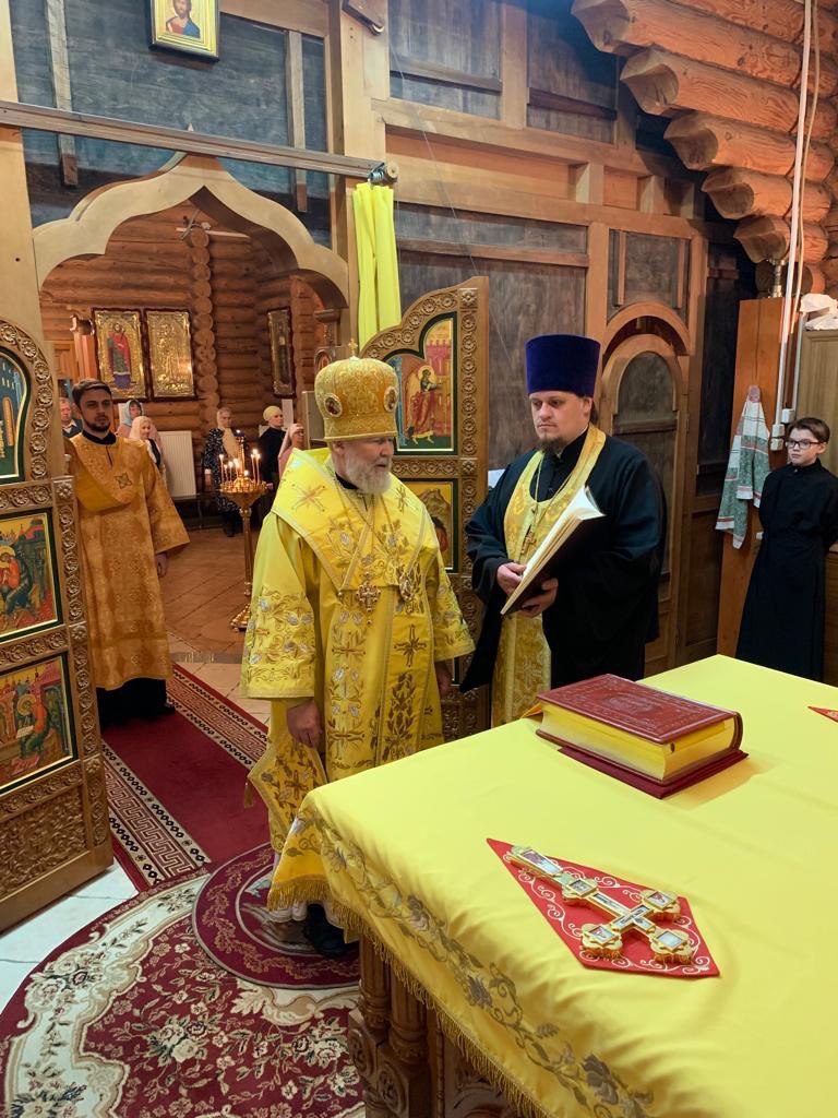Его Преосвященству сослужили: руководитель секретариата епархии, настоятель храма протоиерей Вячеслав Остроумов, секретарь епархии священник Димитрий Сырчин, клирик Покровского кафедрального собора диакон Николай Вайсбекер.