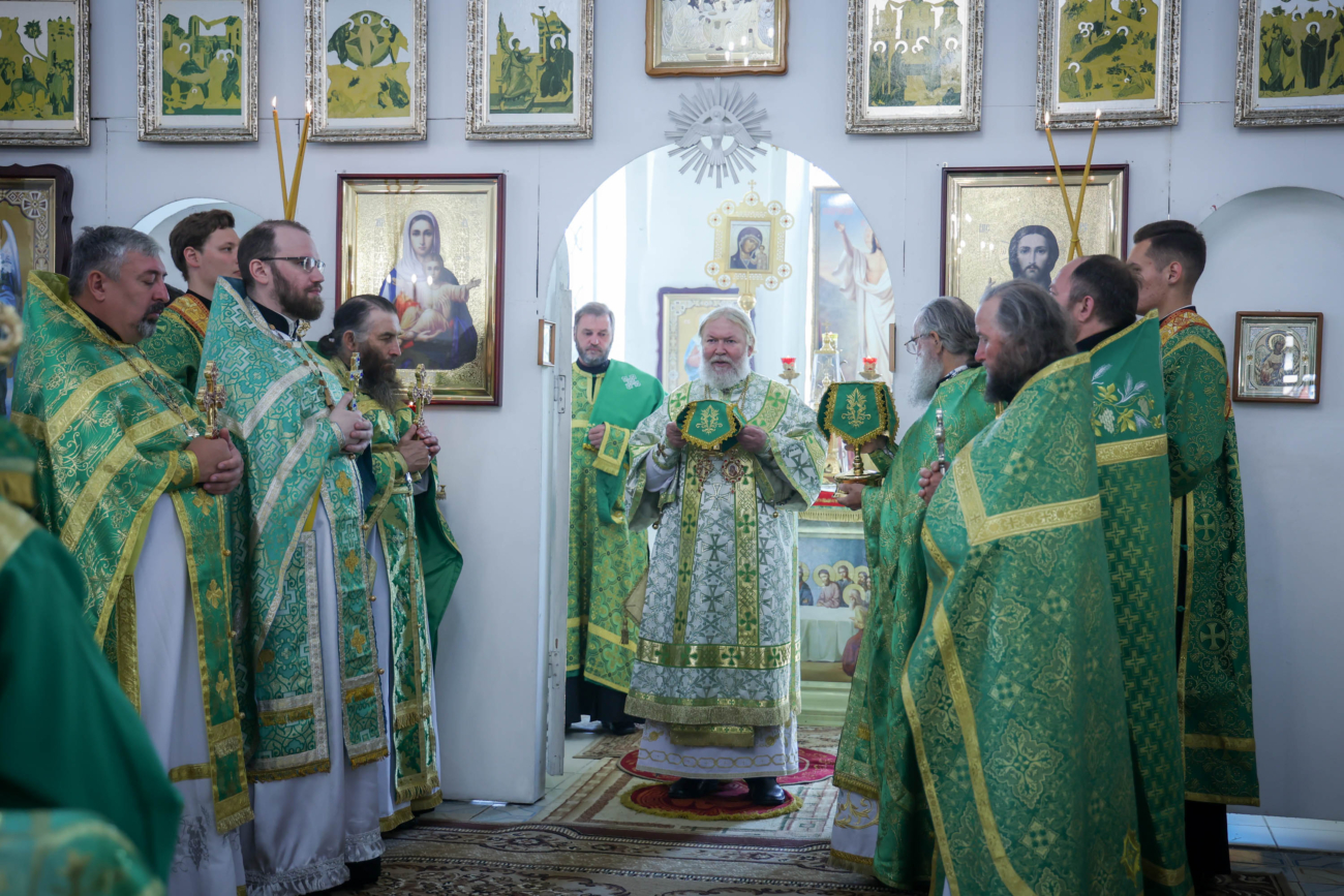 За Литургией Его Преосвященству сослужило духовенство Малопургинского благочиния, а также клирики Покровского кафедрального собора г. Сарапула — диакон Николай Вайсбекер и диакон Герман Остроумов.