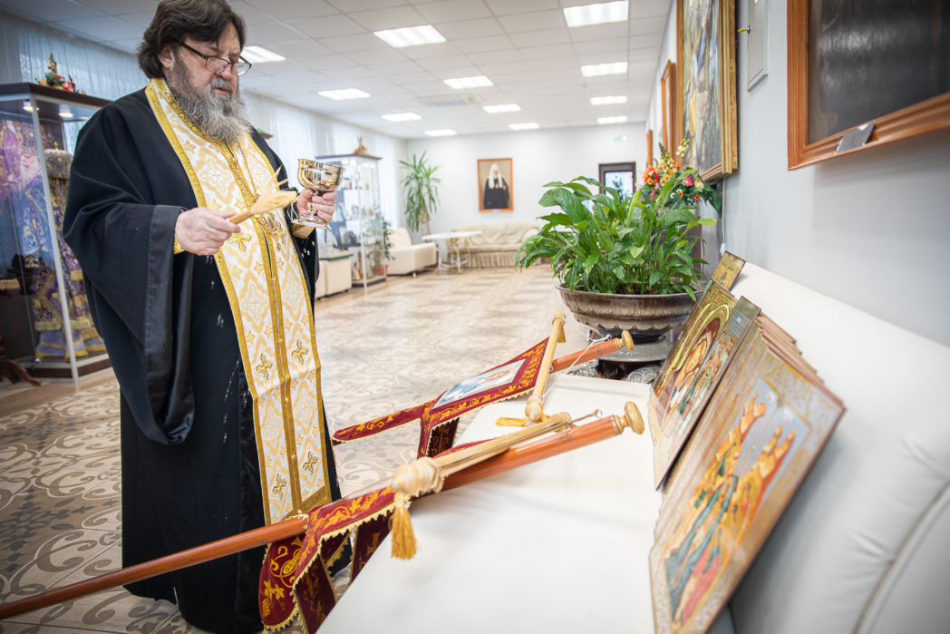Перед отправкой груза на Донбасс, митрополит Ижевский и Удмуртский Викторин совершил чин освящения икон и утвари.