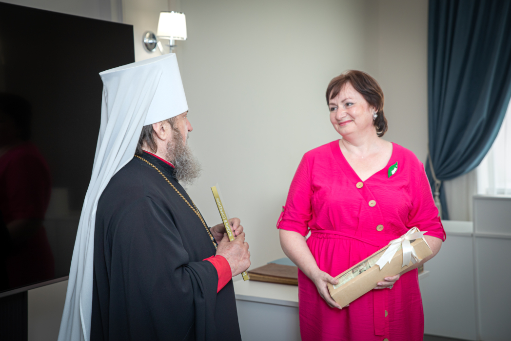 В своем ответном слове директор Национальной библиотеки Татьяна Владимировна Тенсина поблагодарила владыку за многолетнее сотрудничество и отметила: