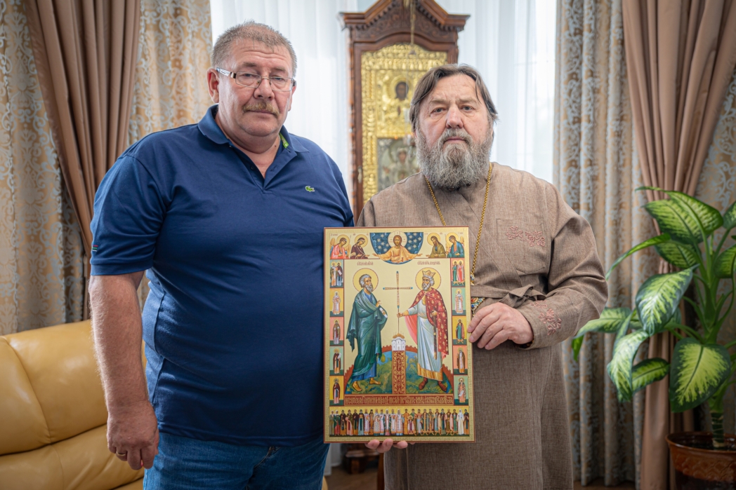 Александр Геннадьевич передал в дар владыке икону под названием «Держава». Архипастырь поблагодарил за столь ценный подарок и сказал, что образ будет храниться в Михаило-Архангельском кафедральном соборе г. Ижевска.