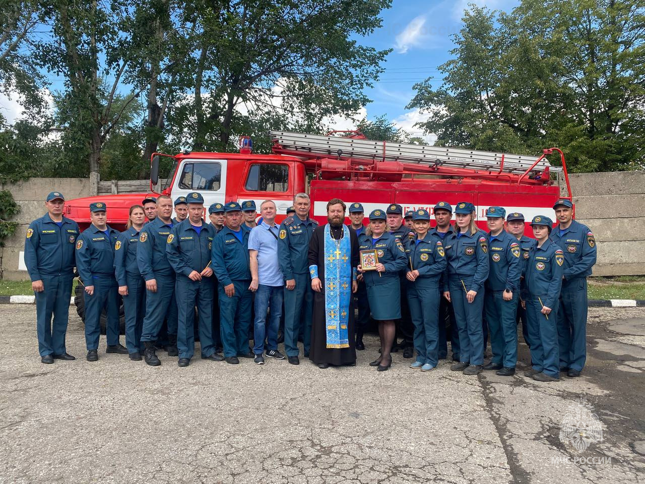 По окончании Богослужения священнослужитель подарил пожарной части икону «Неопалимая Купина», избавляющую людей, почитающих ее, от огня. Эту икону во все времена сопровождали легенды, в которых Пресвятая Богородица спасала и напоминала православным о пожарах. Пожарные и спасатели особо почитают «Неопалимую купину», считают икону своей заступницей и покровительницей. Святыня оберегает тех, кто посвятили себя славному делу спасения от огня людей и их имущества, а также защищает дома от пожаров и поджогов.