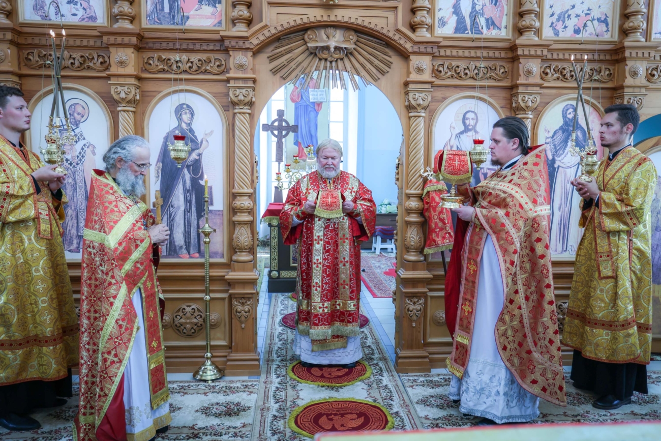 Божественную литургию возглавил Преосвященный Павел, епископ Сарапульский и Можгинский. За богослужением правящему архиерею сослужили: секретарь епархии священник Димитрий Сырчин, настоятель прихода протоиерей Вячеслав Николаев, настоятель храма свт. Николая Чудотворца с. Уром протоиерей Виктор Решетников и клирик Покровского кафедрального собора г. Сарапула диакон Николай Вайсбекер.