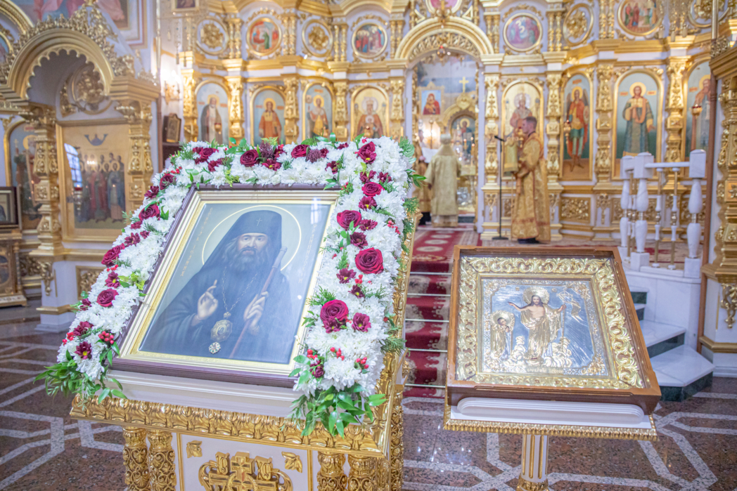 За богослужением для поклонения была вынесена икона с частицей мощей святителя Иоанна (Максимовича), архиепископа Шанхайского и Сан-Францисского , память которого празднуется в этот день.