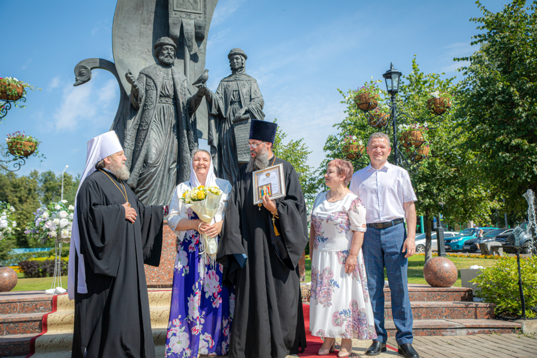 Традиционно в этот день на площади Михаило-Архангельского кафедрального собора г. Ижевска у памятника святым Петру и Февронии состоялось чествование супружеских пар, проживших в браке более 25 лет. В этом году к празднику преобразилась площадка проведения мероприятия: у памятника благоверным князьям был установлен фонтан.