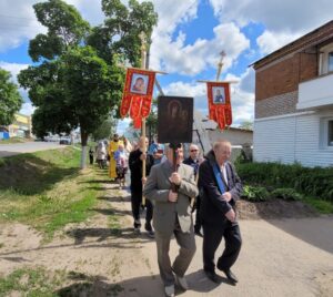 По окончании литургии в честь праздника был совершен Крестный ход, который прошел по улицам Советская, Базарная, Больничная села Сюмси. В Крестном ходе наряду с взрослыми прихожанами храма и жителями с. Сюмси, приняли участие также и дети. По маршруту Крестного хода совершались молебные пения с окроплением святой водой.