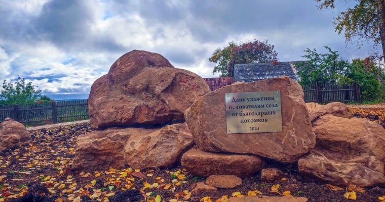 На одном из валунов установили табличку с надписью: «Дань уважения основателям села от благодарных потомков».