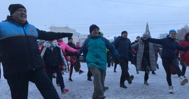 Перед дистанцией все сделали разминку с Дедом Морозом и Тигром, а после вышли на старт. В этот раз активным горожанам предстояло пробежать два круга вокруг Дома правительства — 2023 метра.