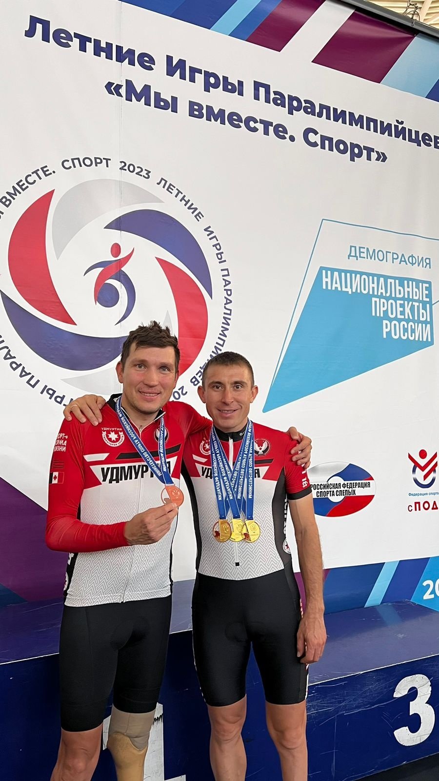 Санкт-Петербург. Спортсмены из Удмуртии Сергей Пудов и Арслан Гильмутдинов взяли 4 медали на Чемпионате России по велоспорту среди лиц с поражением опорно-двигательного аппарата. Об этом сообщает пресс-служба министерства по физической культуре и спорту Удмуртии.