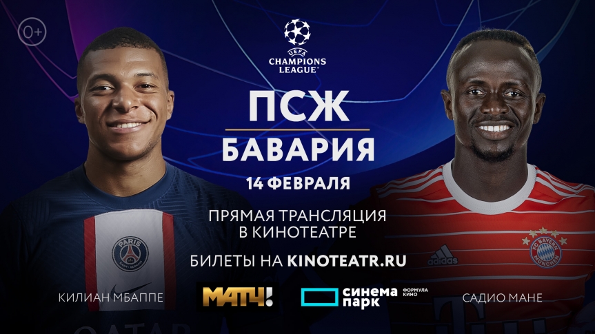 Смотрите прямые трансляции футбольных матчей Лиги Чемпионов УЕФА с 14 февраля в кинотеатре Синема Парк!