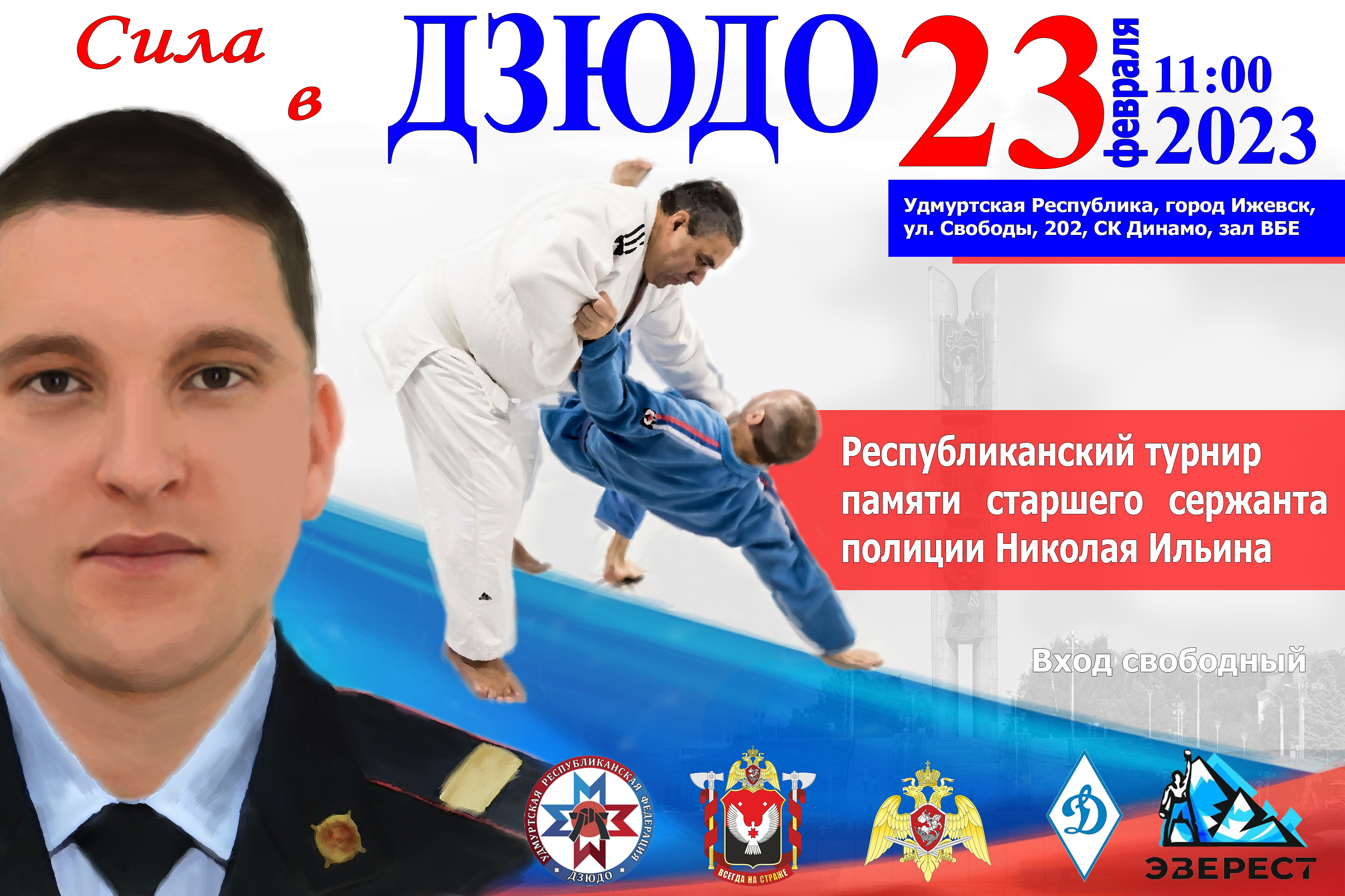 В Ижевске 23 февраля 2023 года в спортивном комплексе «Динамо» состоится Республиканский турнир по дзюдо, памяти старшего сержанта полиции Николая Ильина, погибшего в ходе специальной военной операции на Украине.