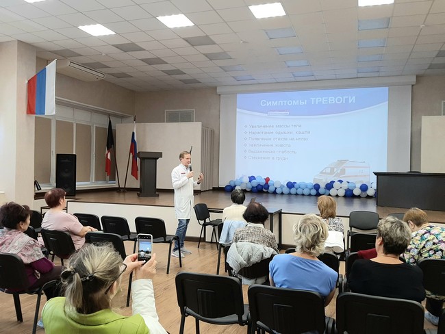 До начала лекции посетители имели возможность ознакомиться с выставкой печатных тематических материалов, измерить артериальное давление, частоту сердечных сокращений, пульсоксиметрию, индекс массы тела, определить степень сердечно-сосудистого риска по шкале SCORE, провести анкетирование на знание первых признаков инфаркта и инсульта.