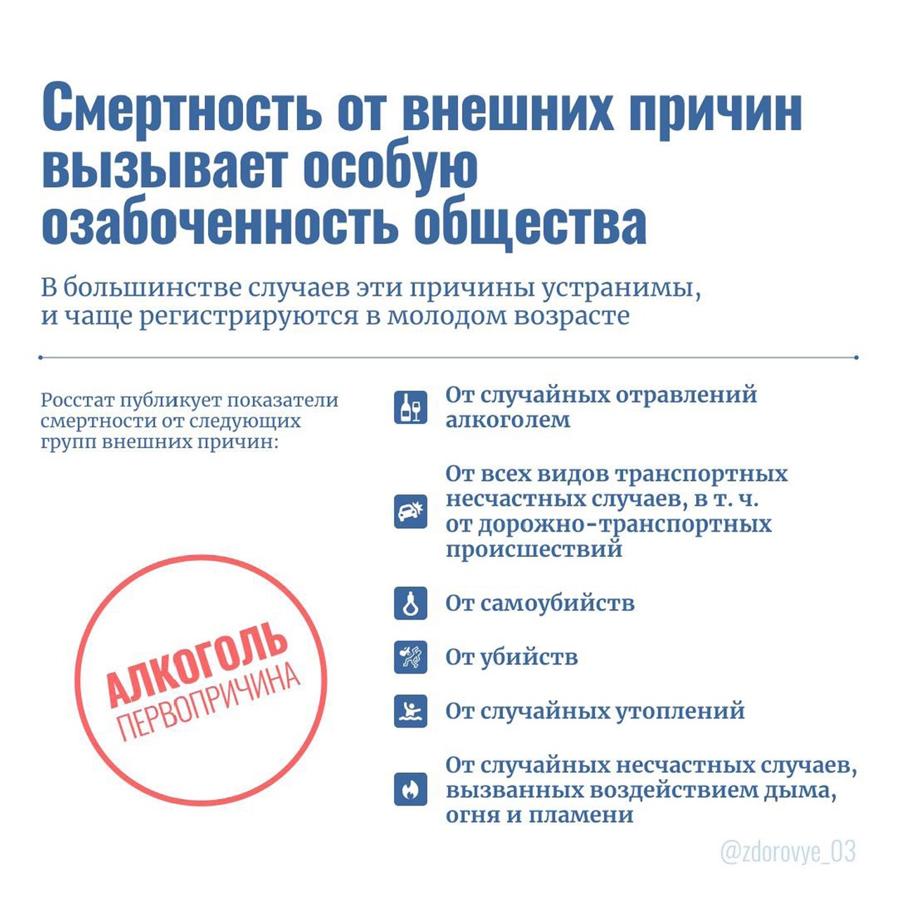 Под смертностью от внешних причин подразумевается смертность, вызванная не болезнями, а иными внешними факторами, а именно - несчастные случаи, отравления (чаще всего алкоголем и его суррогатами), суициды.