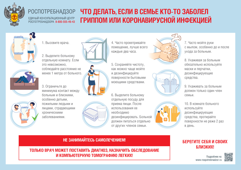 Роспотребнадзор напоминает, что делать, если в семье кто-то заболел гриппом или коронавирусной инфекцией