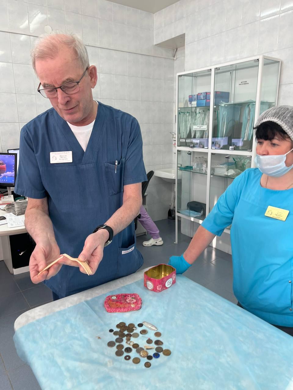 По словам заведующего эндоскопическим отделением Михаила Шишкина, врачи собрали целую шкатулку таких инородных тел, извлеченных из детских ЖКТ.