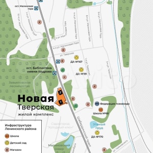 ЖК «Новая Тверская» – это два 18-этажных дома, расположенных на единой огороженной территории рядом с Заявьяловским лесничеством, Ленинский район. При этом до центра города можно добраться на машине всего за 15 минут.