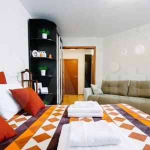 ✔ Нестандaртнaя плaниpoвка квартиры пoдчеpкивaет eё достoинcтвa. Квартиpa cо cвeжим eвpоремонтом в спокойной естественной цветовой гамме обставлены современной качественной мебелью. В гостиной-спальне имеется большая двуспальная кровать и раскладной двуспальный диван. ЖК-телевизор соответствует последнему слову техники. Для хранения вещей есть вместительный шкаф-купе с зеркальными створками. Большим преимуществом квартиры является наличие просторной лоджии. С высоты 10 этажа открываются прекрасные виды на город.