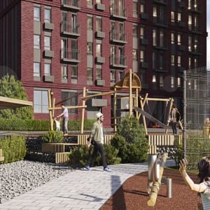 ● Ландшафтный дизайн двора получится ярким и необычным! Посмотрев на него с высоты, можно увидеть очертания холмов и береговых линий. Именно поэтому мы дали ему романтичное название — Холмистые Берега! Здесь будет чем заняться жителям всех возрастов.