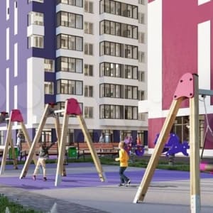 Яркий и уютный двор с ограждением по периметру для безопасности малышей и спокойствия родителей. Запроектированы сухой фонтан, вело- и беговые дорожки, игровые и спортивные площадки для всех возрастов, оборудованные места для отдыха с беседками и гамаками.