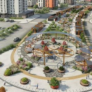 • Центральный бульвар. На 2,37 Га территории будут расположены: площадки для отдыха и занятий спортом, уютные кафе и магазинчики, пункты проката велосипедов и самокатов. Вдоль всего бульвара мы пустим 3569 метров беговых и велодорожек. Гулять, отдыхать и заниматься спортом вы сможете прямо внутри своего микрорайона, нужно только выйти из дома!