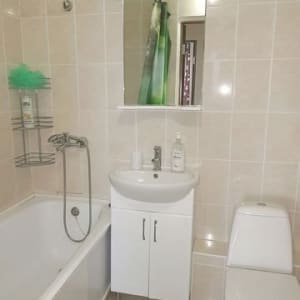 * Кухонный гарнитур со встроенной бытовой ТЕХНИКОЙ: стиральная машина-автомат, электрическая плита с вытяжкой, 2-камерный холодильник; ЖК-телевизоры в гостиной и в спальне, СВЧ-печь, фен, утюг, гладильная доска; постельное бельё, полотенца, необходимая посуда.