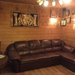 — Три спальни с двуспальными кроватями (8 мест), кожаный раскладной диван (2-3 места). Общее 10 спальных мест, дом вмещает до 15 человек.