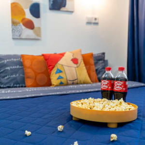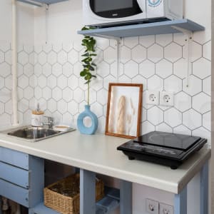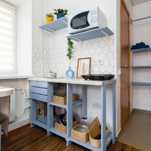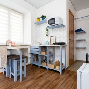 - Кухня с полным набором техники и посуды, электрический чайник, индукционная плита, микроволновая печь, холодильник, комфортная обеденная зона;