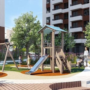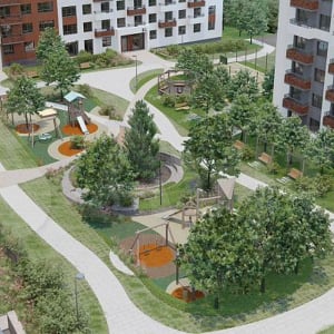 ● Дворы выполняем по принципу «двор без машин». Въезд во двор предусмотрен только для спецтехники по пешеходным тротуарам усиленной конструкции. Пешеходные тротуары отделены от проездов бордюрами.