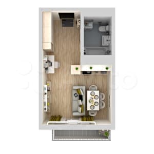 Продается студия в Хюгге-квартале Истории, который расположен в городке Металлургов Октябрьского района Ижевска, в пяти минутах ходьбы от остановки “Магазин Хозтовары” на улице 50 лет ВЛКСМ.